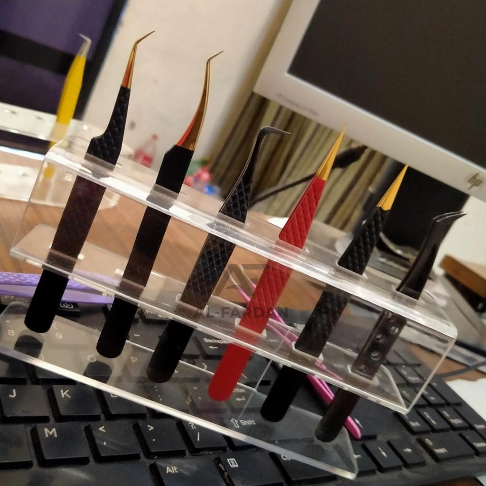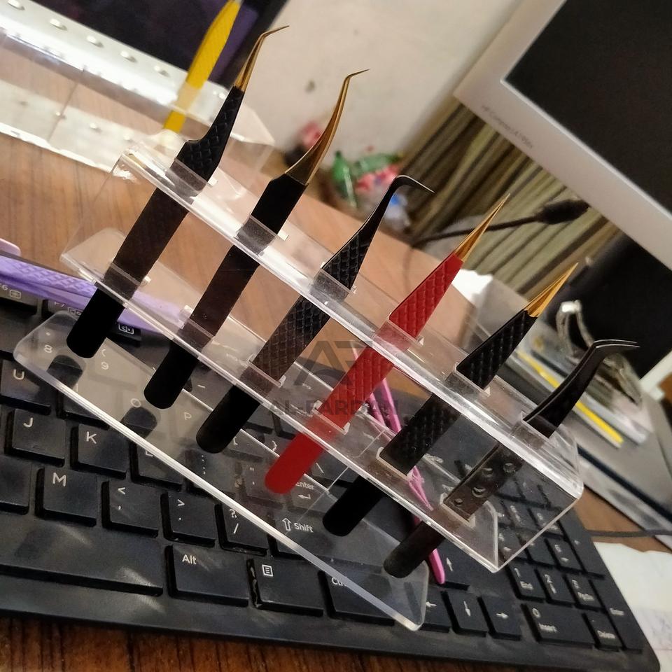 Meilleures ventes de pinces d'extension de cils noires avec pointe dorée en plastique solide en acier inoxydable Type de pointe acrylique présentoir