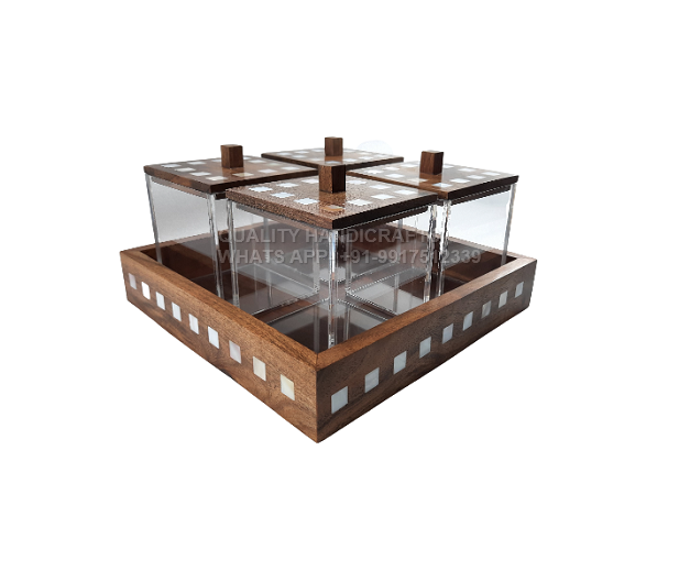 Meilleures ventes de vadrouille en bois incrustée de nacre noire Sculpture au laser Certifié EPCH Usage domestique Ramadan Eid Fabricant de plateau de service cadeau