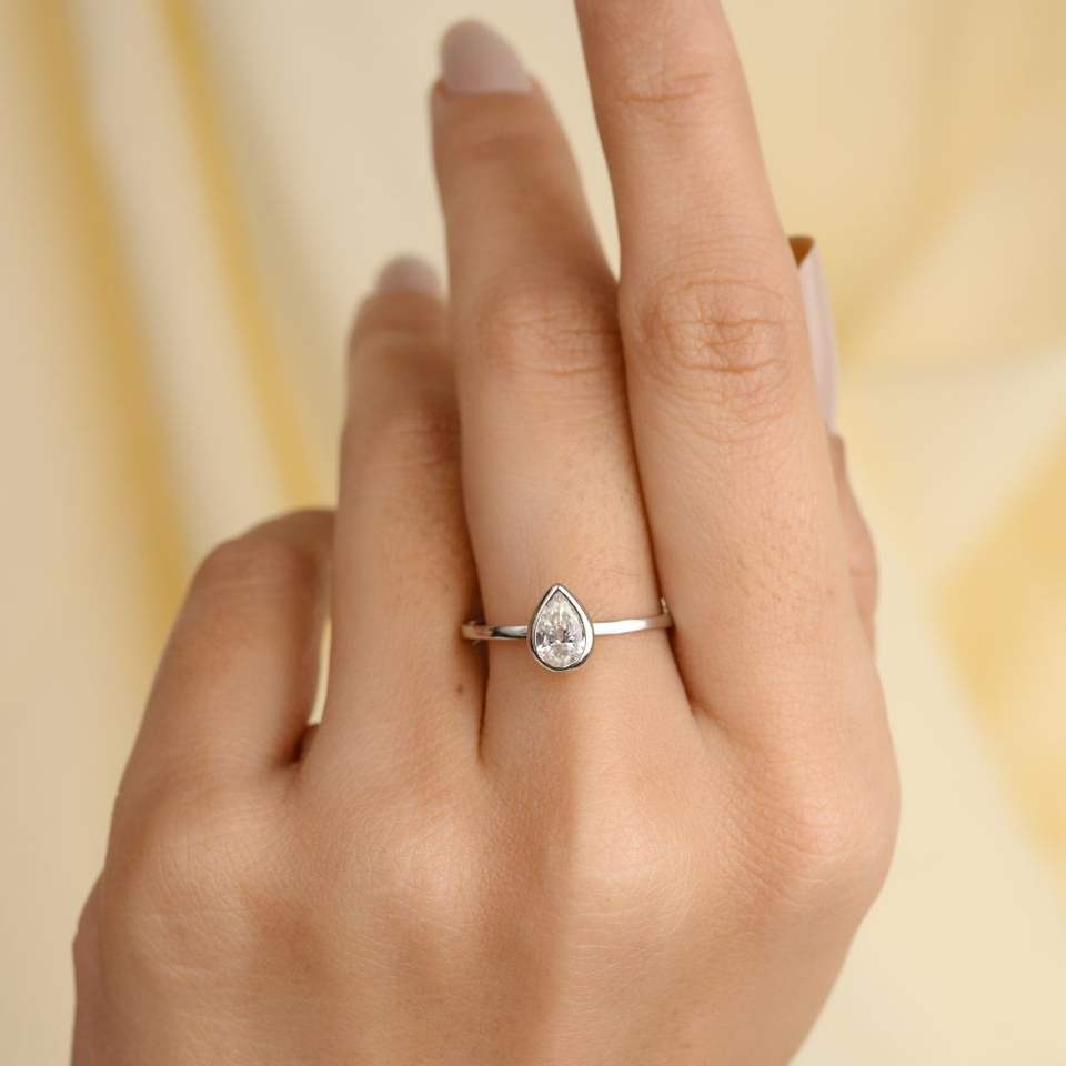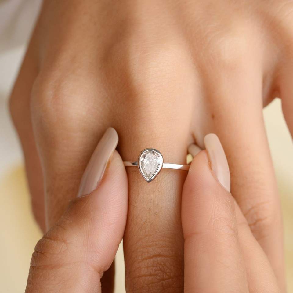 Bague de fiançailles en or blanc massif 18 carats, 100 % authentique, best-seller, design classique, diamant taille poire serti clos, pour mariage et fêtes
