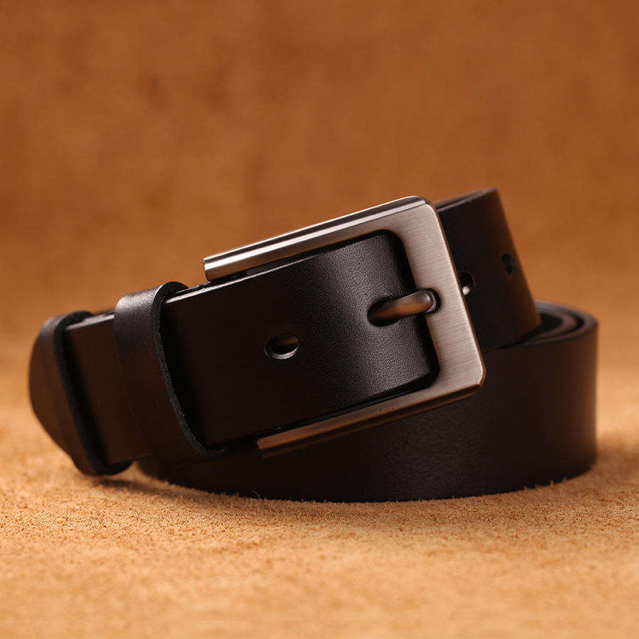 Meilleure vente classique boucle ardillon hommes véritable peau de vache ceinture en cuir usine en gros-cuir pleine fleur plaine noir marron alliage