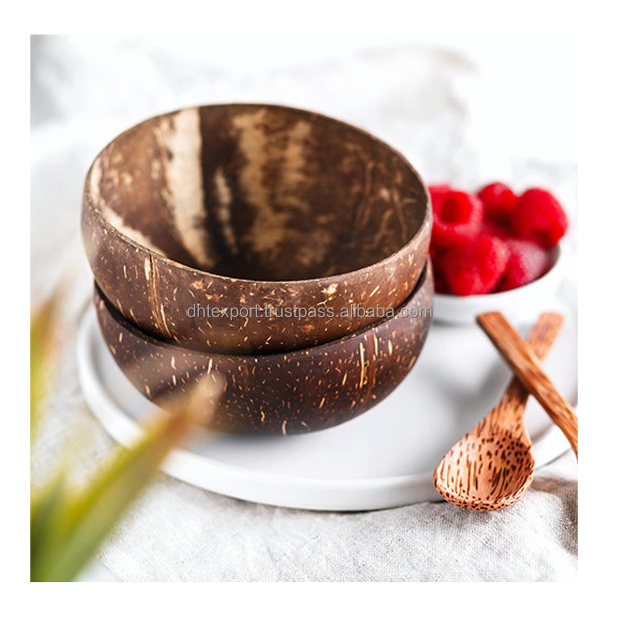 Meilleure vente bol en coquille de noix de coco fabriqué à la main personnalisé Vietnam ensemble de vaisselle artisanale DHT durable poli pour la durabilité