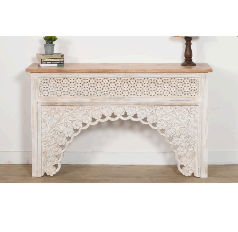 Meilleure vente Table console convertible en bois naturel blanc vieilli sculptée à la main nouveau mobilier design pour appartement hôtel