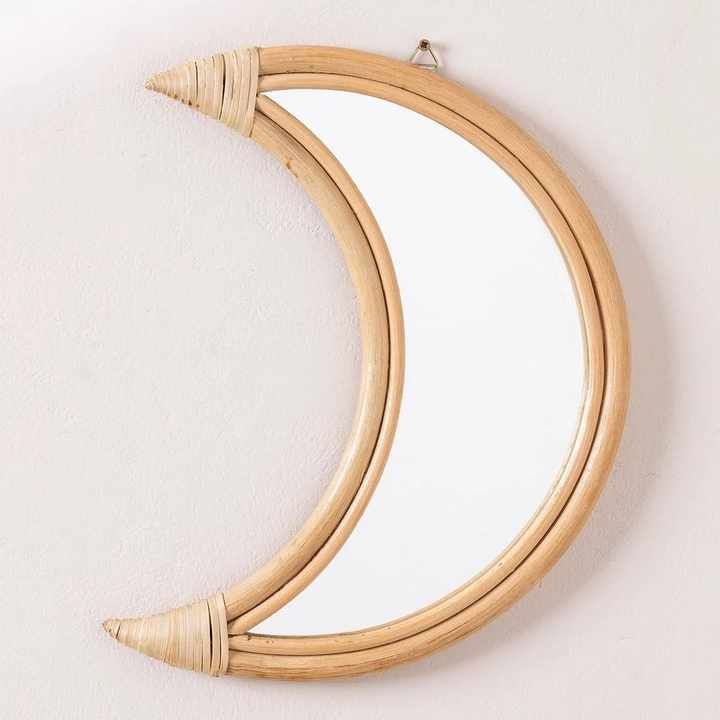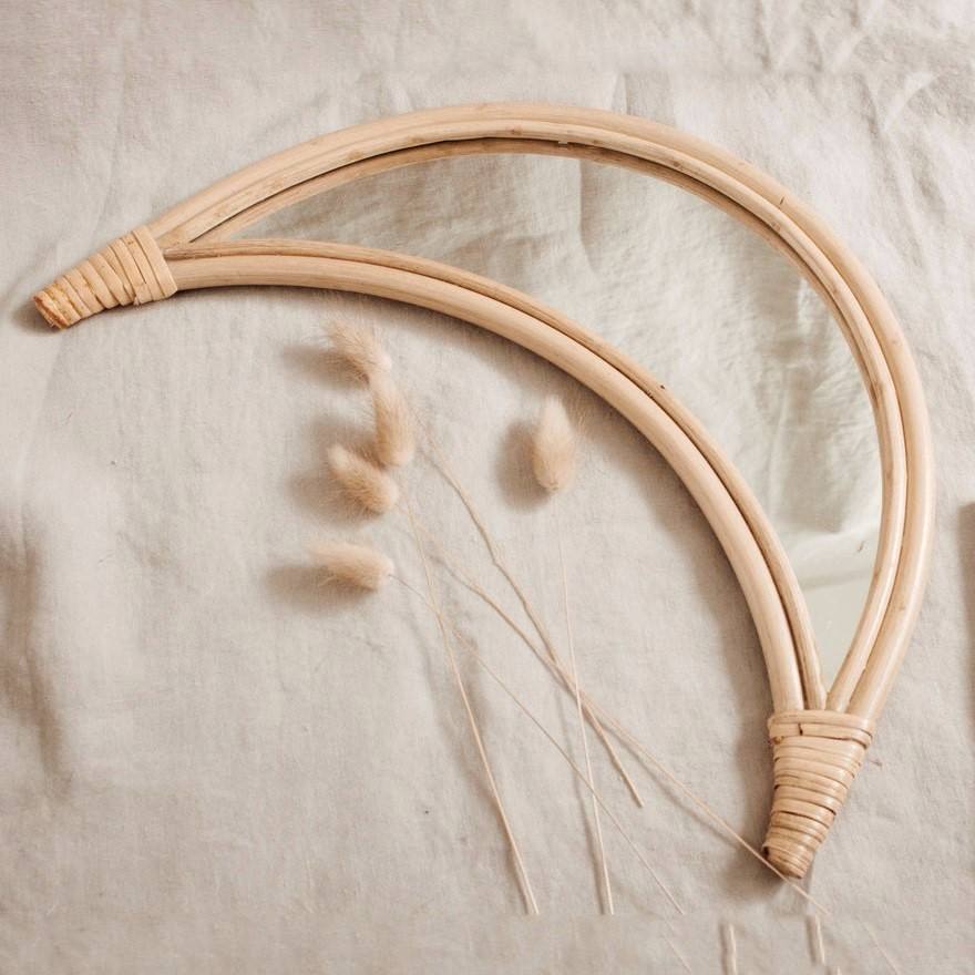 Meilleure vente de miroir en forme de croissant de lune pour chambre miroirs décoratifs en rotin en forme de demi-lune acceptés OEM