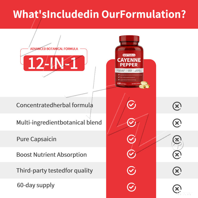 Type de produit:Capsules de gélatine molle au poivre de Cayenne