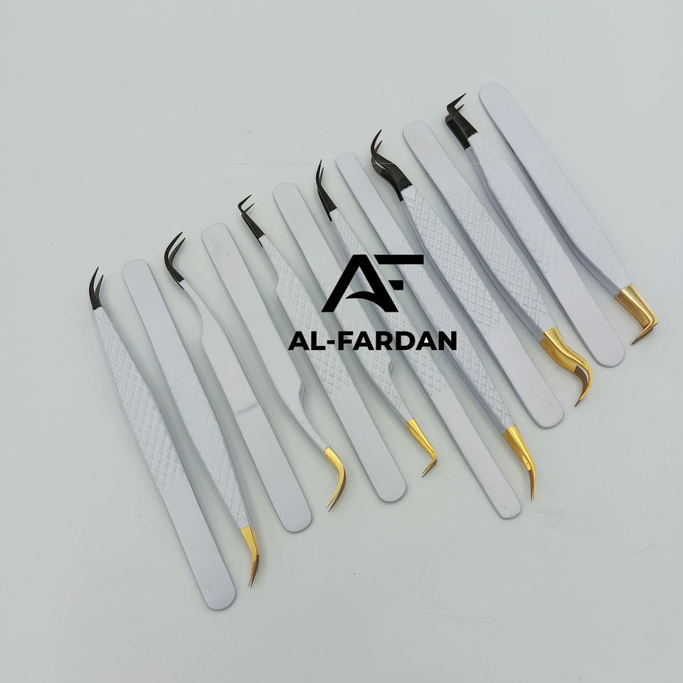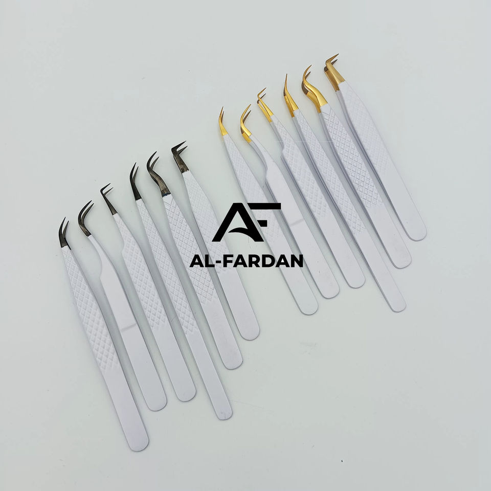 Pince à épiler en acier inoxydable avec logo personnalisé de meilleure vente pour extension de cils blanc couleur or noir pointes en fibre volume de cils