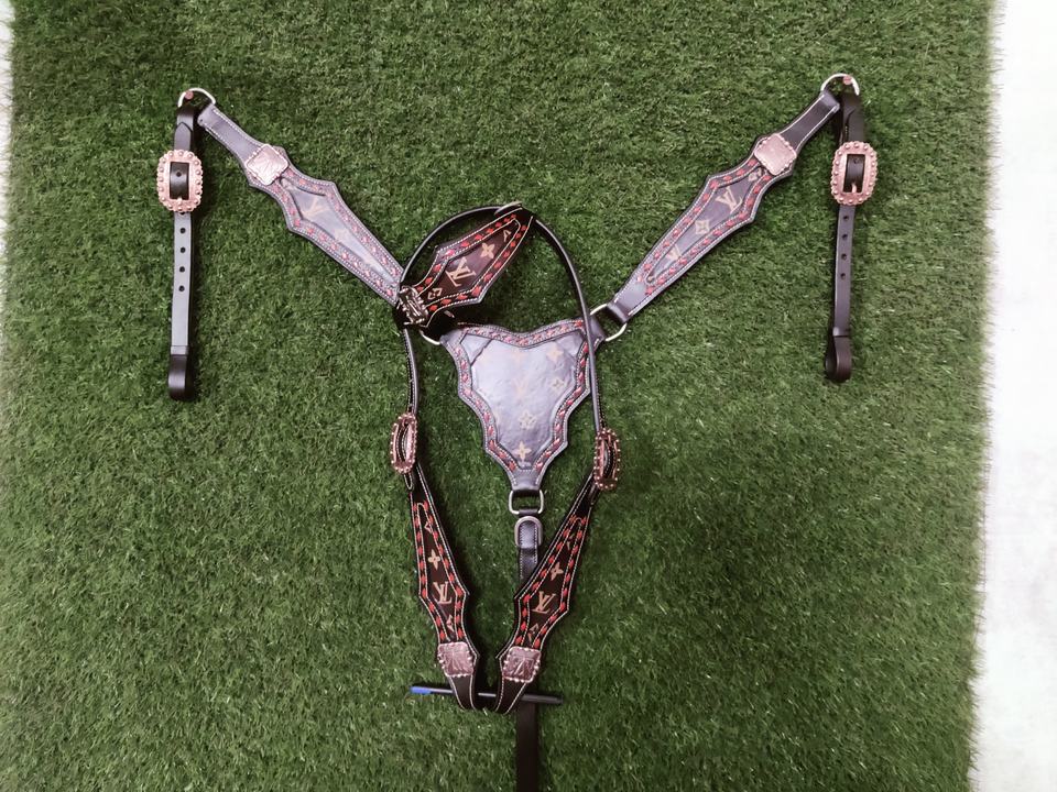 Meilleure vente sur mesure 100% cuir de vache une oreille tête avec collier de poitrine et sangle de flétrissement fabricant
