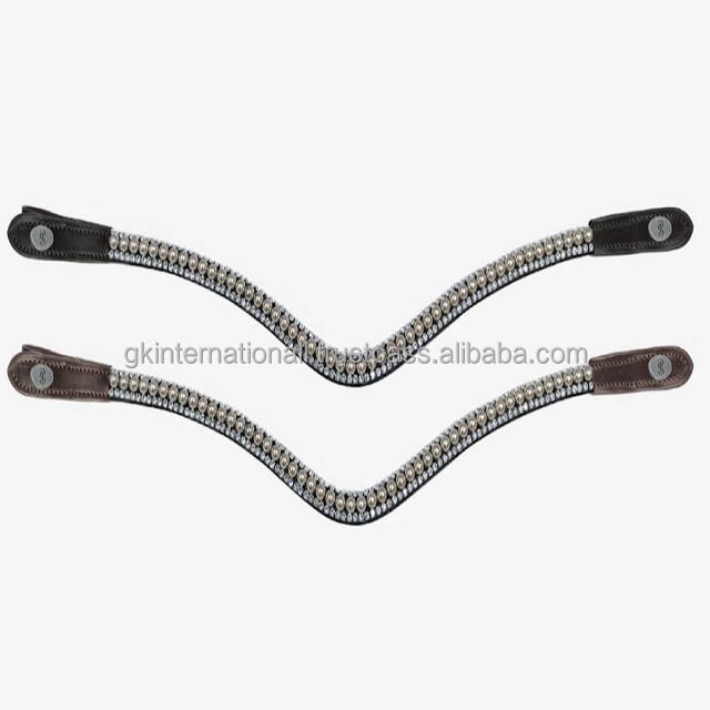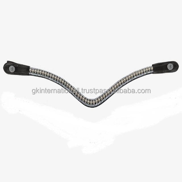 Bandeau de tête de cheval en cuir anglais noir incurvé, orné de cristaux transparents et de perles, sur mesure, best-seller