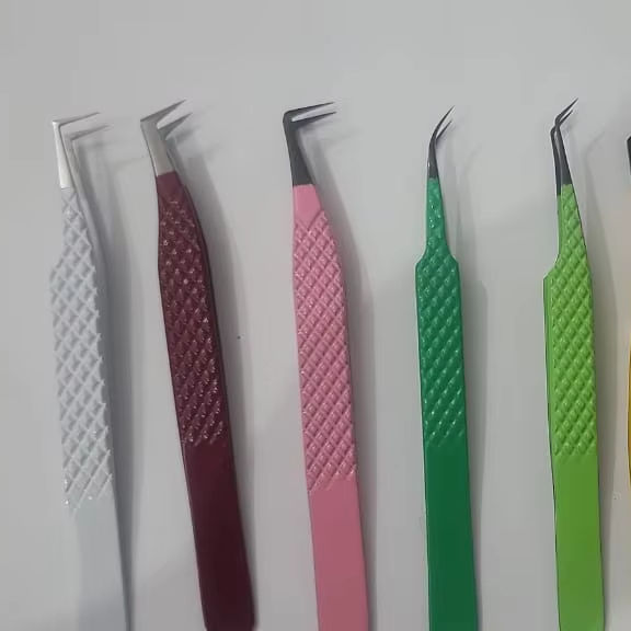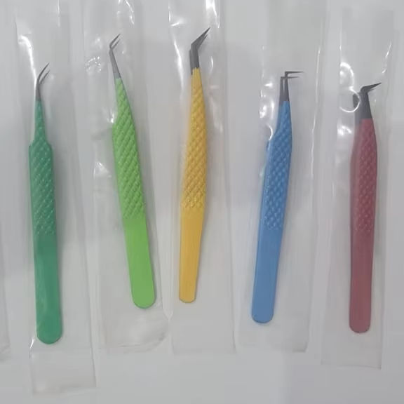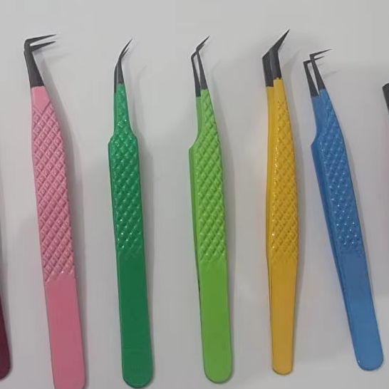 Best Selling Professional Custom Stainless Steel Fiber Tip Tweezers Strong Hold Precision Colored Lash Tweezers Eyelash