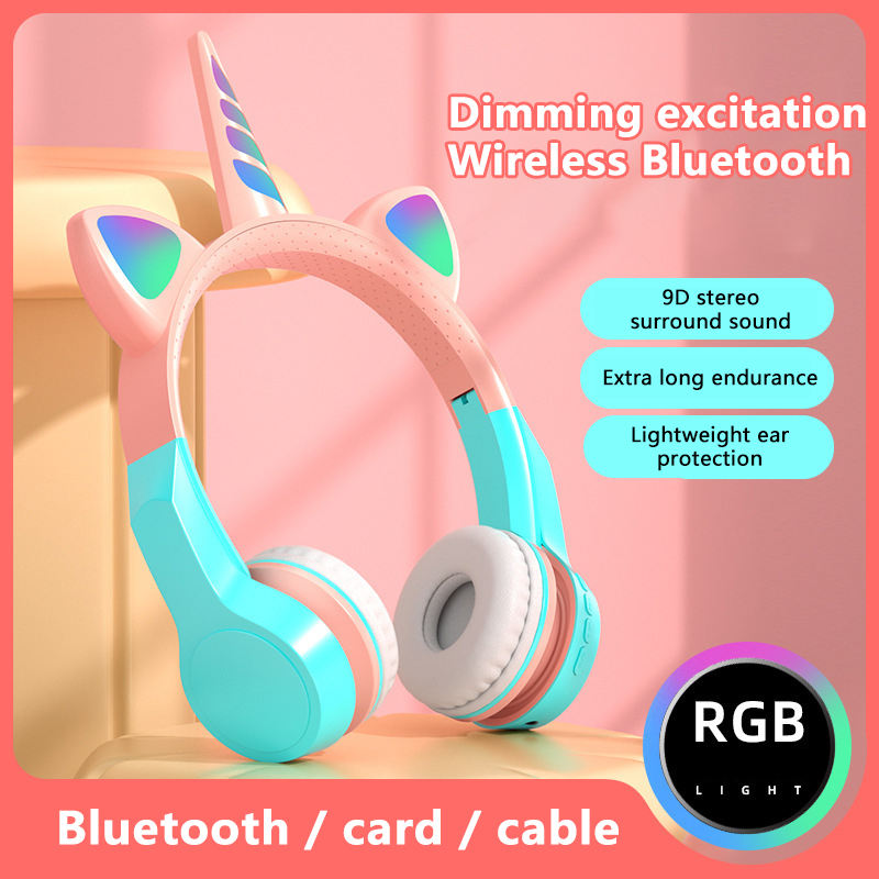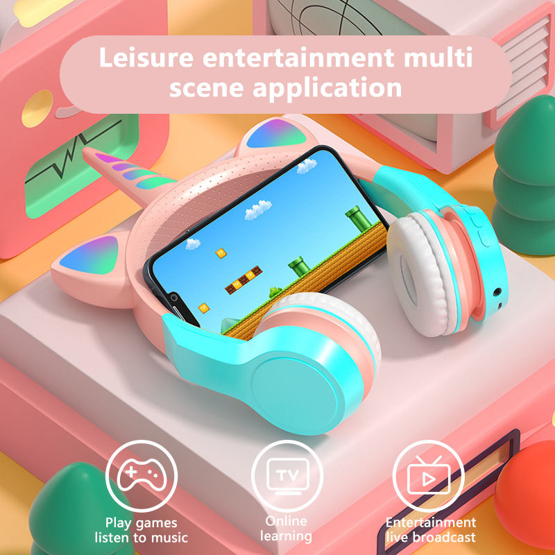 Meilleure vente casque mignon RGB filles casque pour enfants casques enfants licorne oreille sans fil casque chat oreille casque jeu