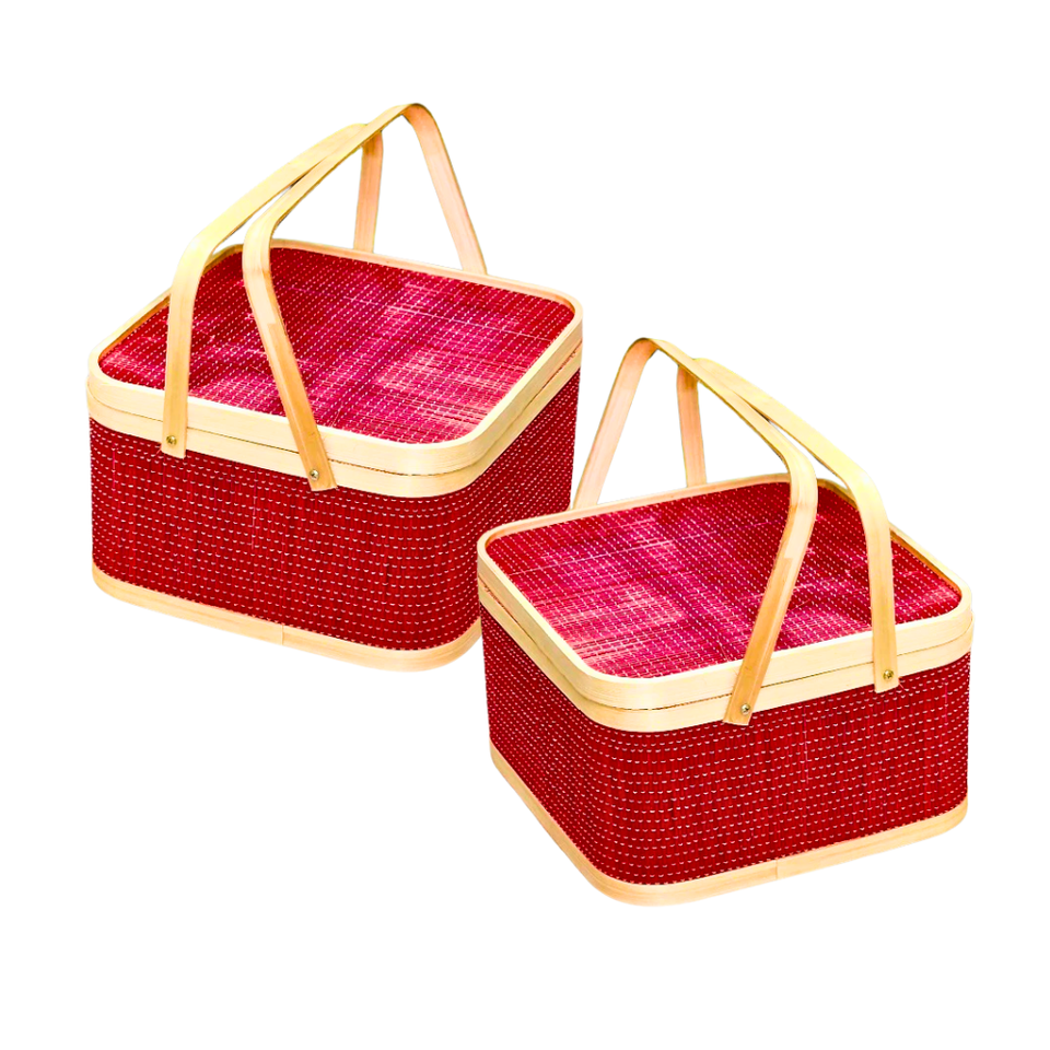 Panier-cadeau décoratif en bambou le plus vendu avec couvercle et poignées, couleur personnalisable disponible, artisanat en osier avec couvercle, idéal pour les cadeaux