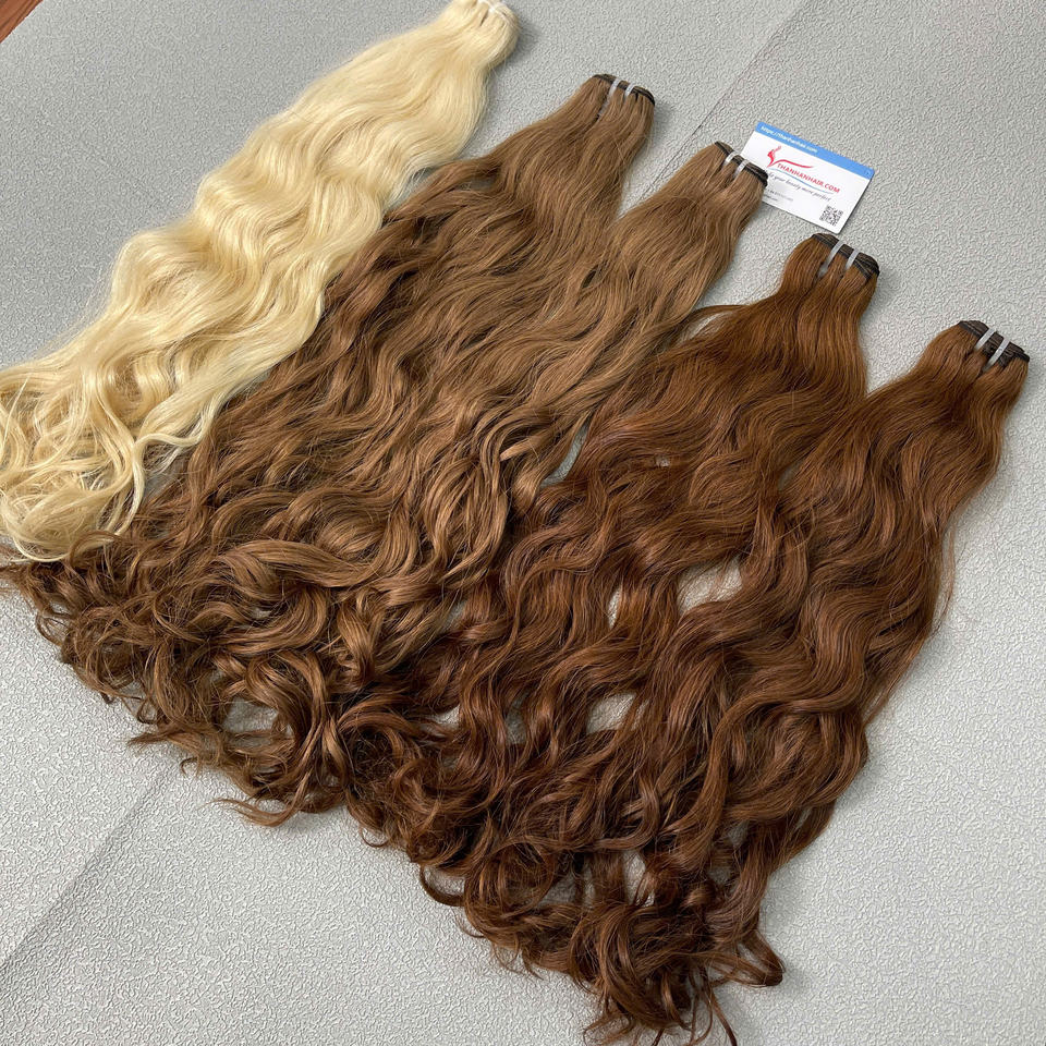 Meilleure vente!!! Tissage de cheveux humains ondulés et ondulés de toutes couleurs, cheveux bruts vietnamiens super doublement étirés