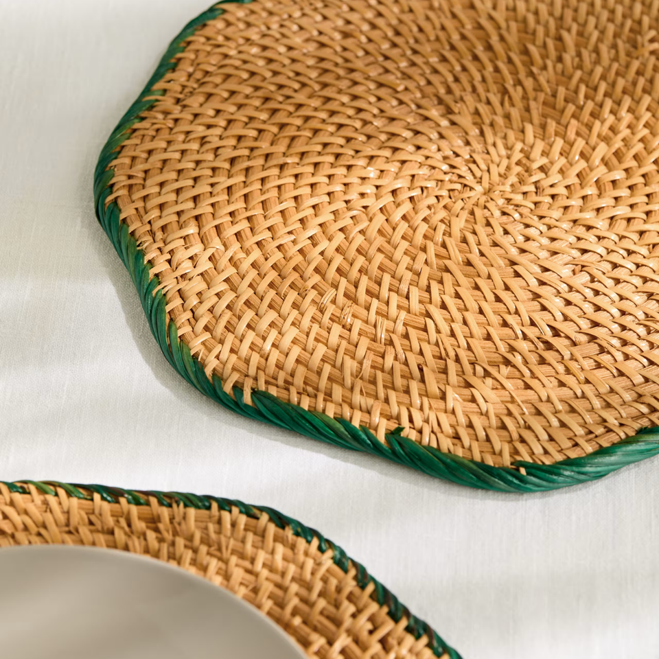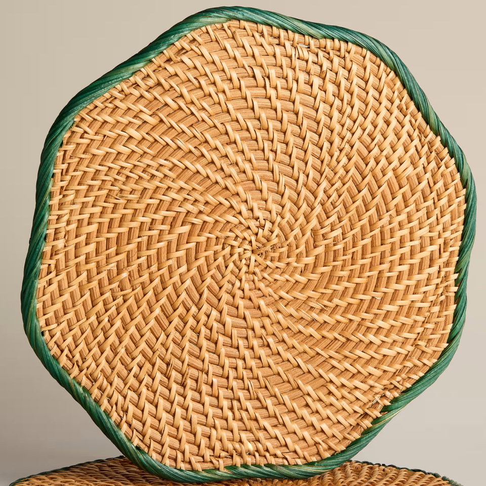 Best Selling Eco Friendly Handmade Rattan Placemat With Green Edge Hand Woven Table Mat Natural Wicker Home Decor For Bulk Order