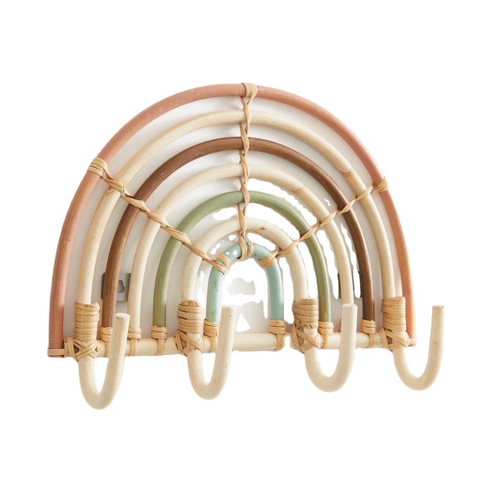 Meilleures ventes : Crochets muraux arc-en-ciel en rotin naturel écologique, organisateur mural pour chambre d'enfant, décoration bohème faite à la main, vente en gros