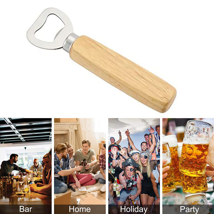 Meilleure vente d'outils de cuisine créatifs écologiques à la mode ouvre-bière en acier inoxydable avec manche en bois