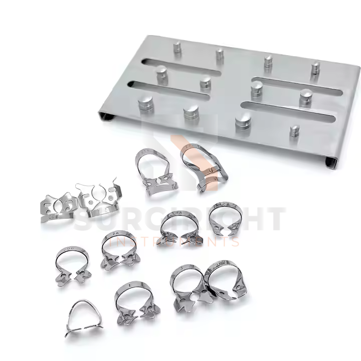 Best Selling Electricity Rubber Dam Kit High Quality Stainless Steel Clamp Forceps Dental Instruments Ergonomic Grip Surgiright