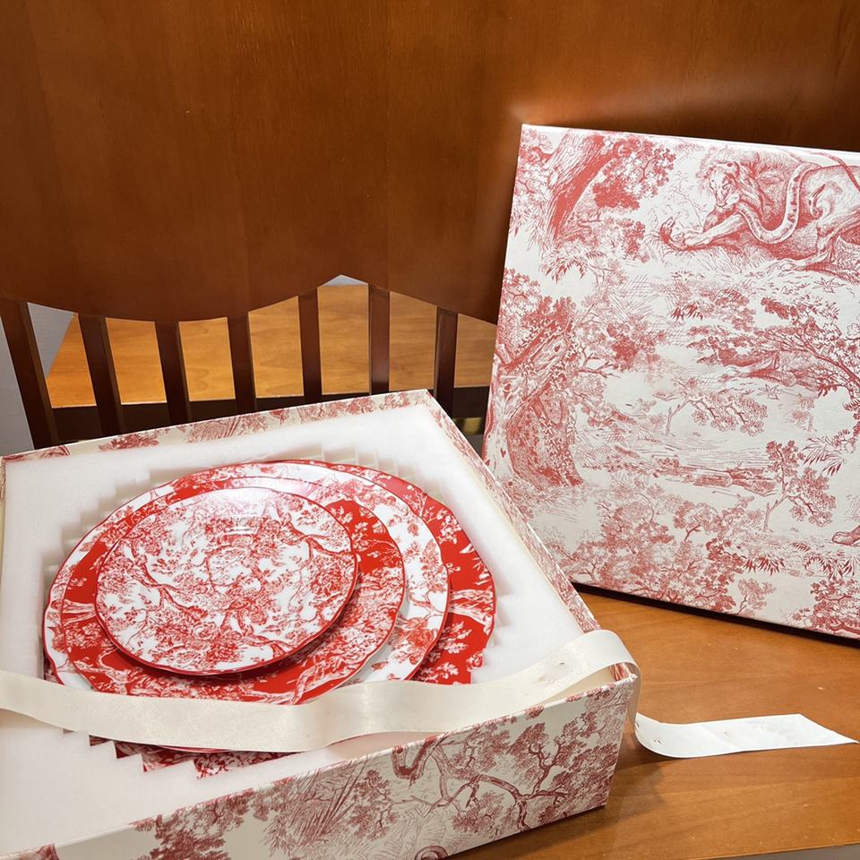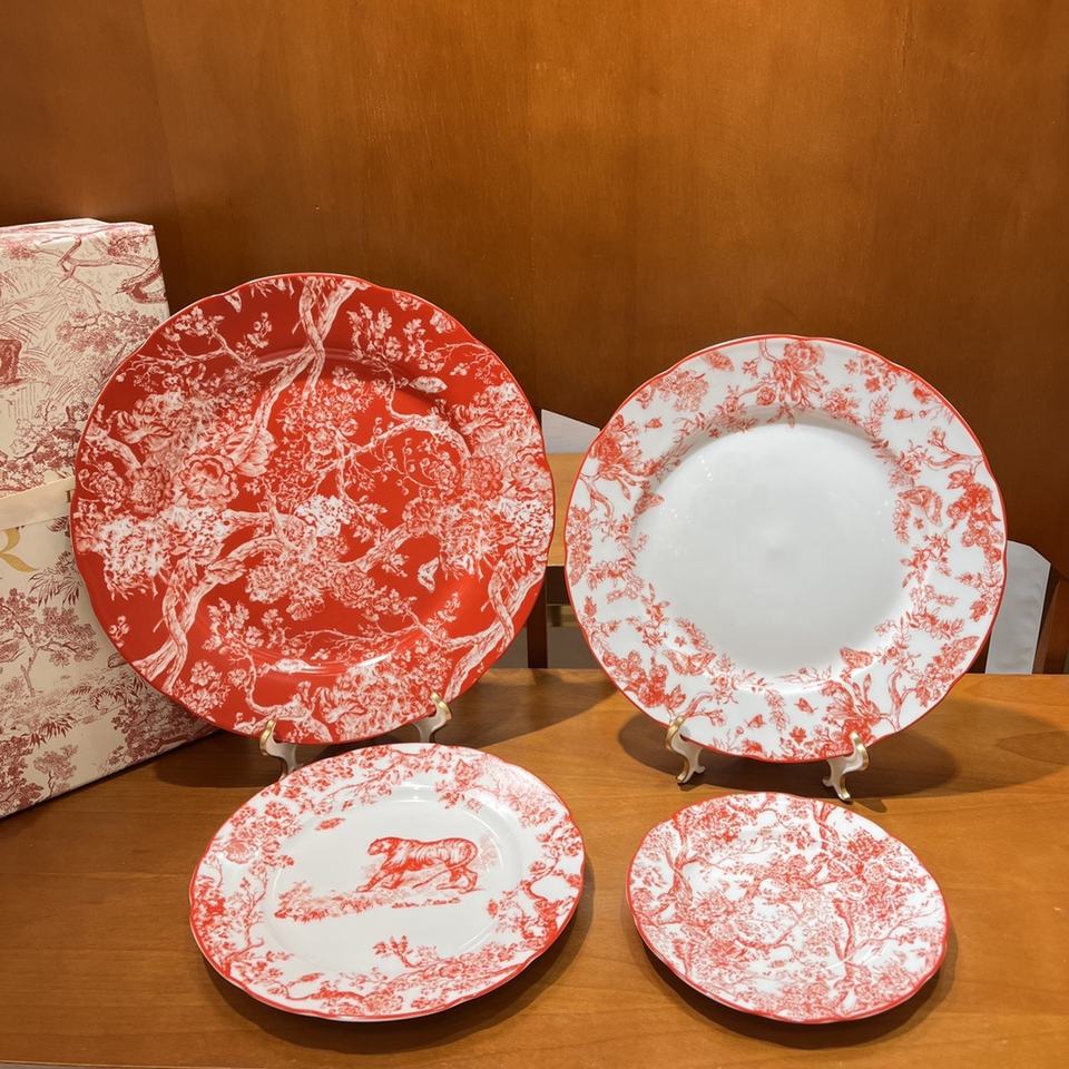 Service de table de luxe écologique en porcelaine fine, motif jungle rouge européen, best-seller