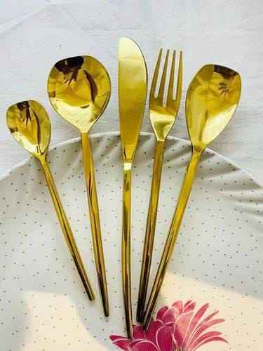 Ensemble de couverts en acier inoxydable durable, best-seller, au design tendance et finition dorée, en vente