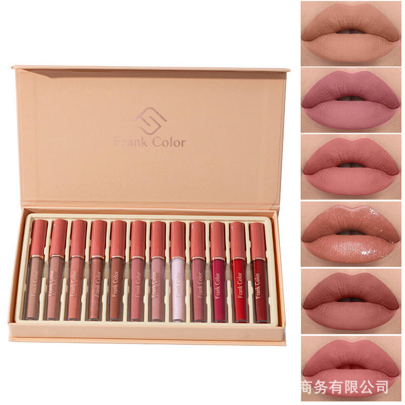 Best-seller FrankColor : Coffret de 12 gloss à lèvres format standard, fini mat et scintillant, anti-transfert, pour sublimer les lèvres