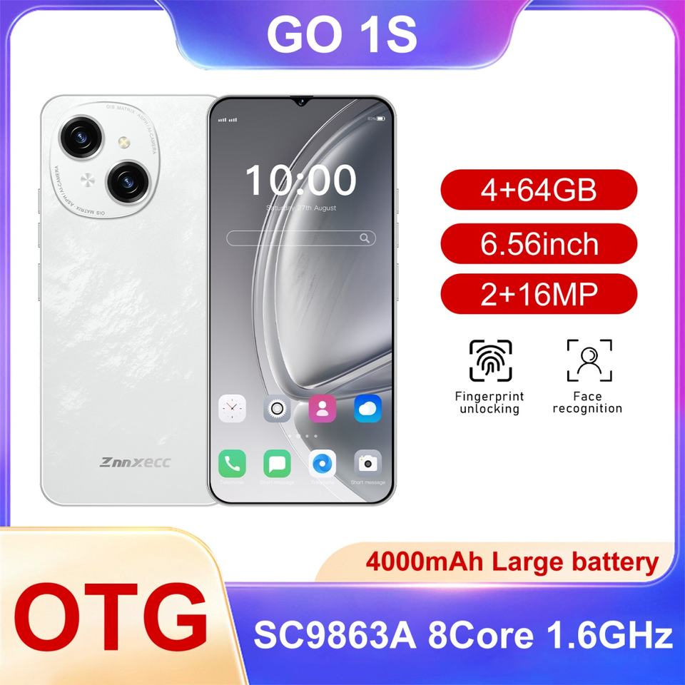 Smartphone Android GO 1S le plus vendu, débloqué en usine, version mondiale, 4 Go + 64 Go, écran HD, Octa Core, 2G/3G/4G, grand téléphone, anglais