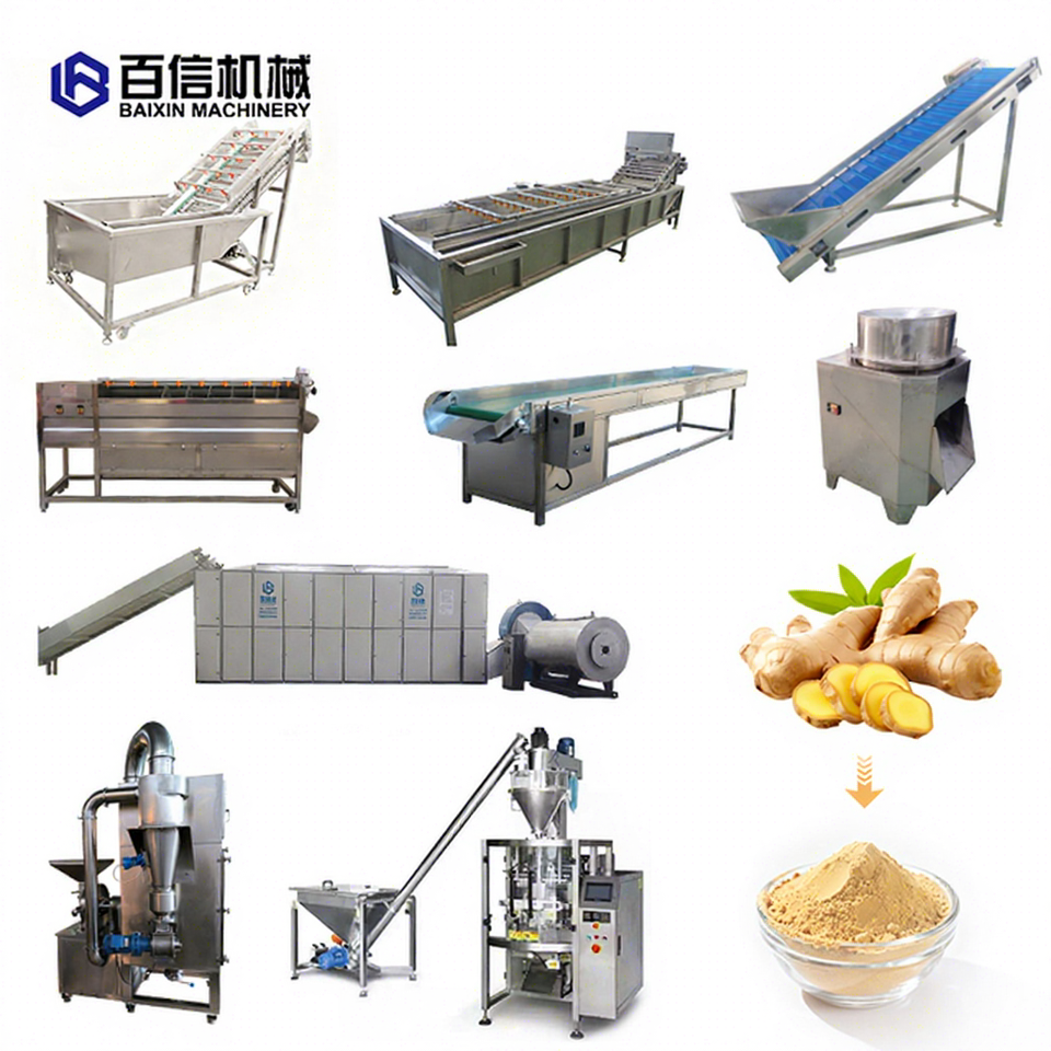 Ligne de production de gingembre la plus vendue avec moteur PLC - Haute efficacité, en acier inoxydable 304, pour le lavage et le traitement de la poudre de gingembre