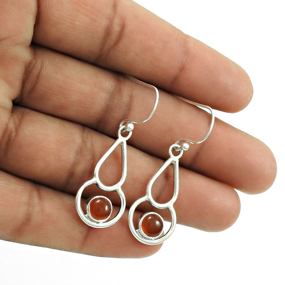 Meilleures ventes de bonne qualité en argent Sterling 925 cornaline naturelle pierres précieuses boucles d'oreilles élégantes pour femme filles bijoux faits à la main inde