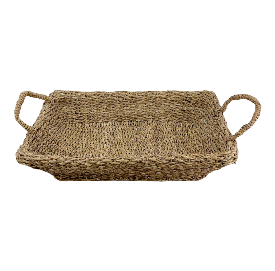 Plateau de service tressé à la main le plus vendu à partir de jonc de mer naturel plateau de table de service avec poignées