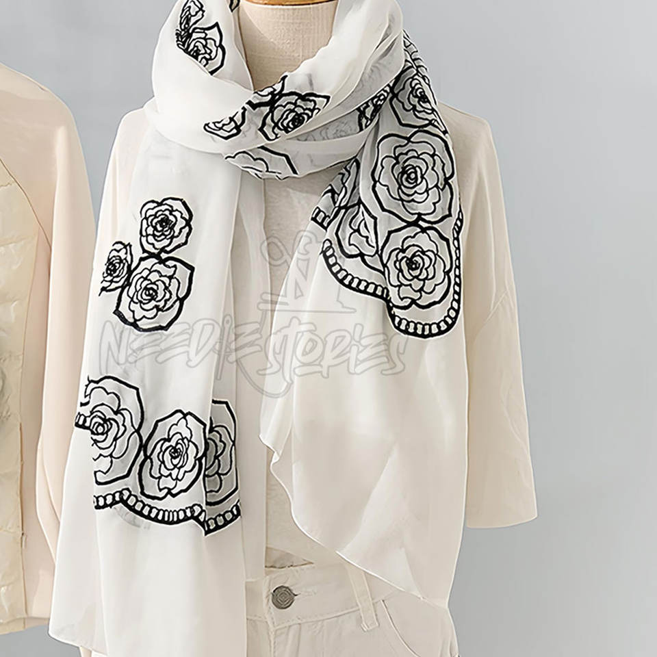 Best Selling Hand Embroidery Silk Scarf Winter Wear Hand Embroidery Silk Scarf Light Weight For Sale