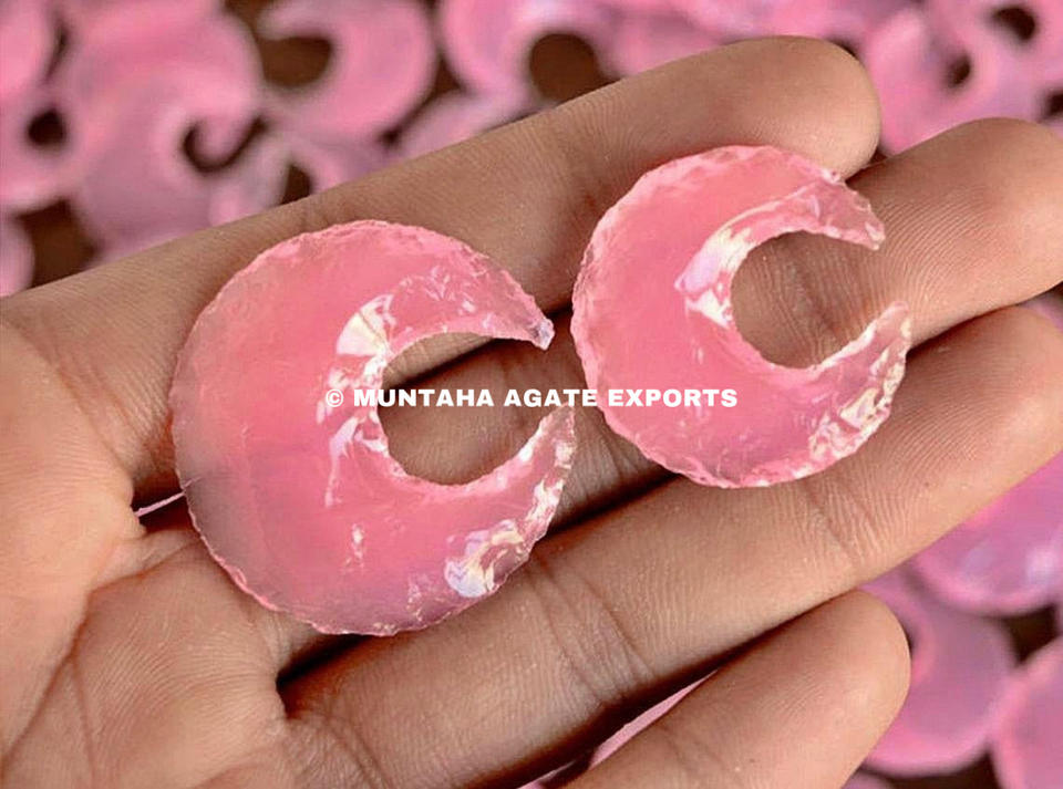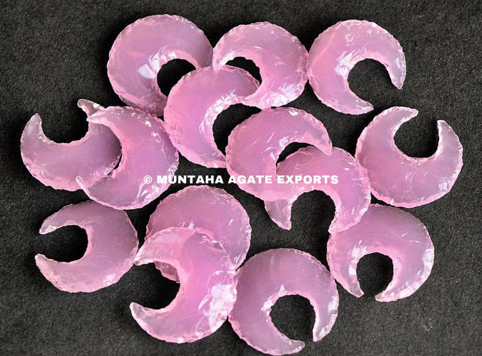 Best Selling Hand-Made Flinted Rose Quartz Moon Gemstone Muntaha Agate's Wholesale Feng Shui Muntaha Agate Rose Quartz Moon