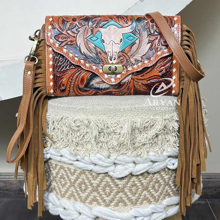 Nom du produit:Mini sac bandoulière à franges en cuir travaillé à la main