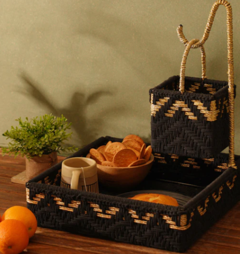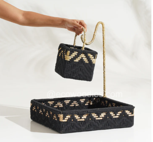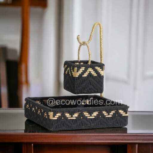 Panier Organisateur Double Étage Classique Écologique Fait Main Marron & Doré en Corde de Coton Élégante Ecowoodies – Meilleures Ventes