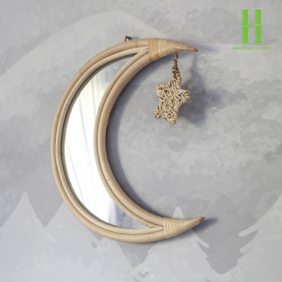 Miroir mural suspendu en rotin en forme de lune, fait à la main, écologique, durable, pour enfants, chambre d'enfant moderne, best-seller
