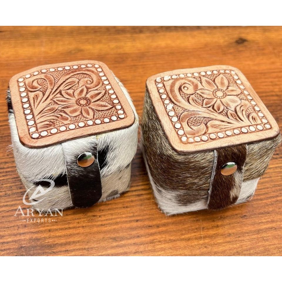 Product Name:Hand Tooled Cowhide Leather Small Travel Ring Box