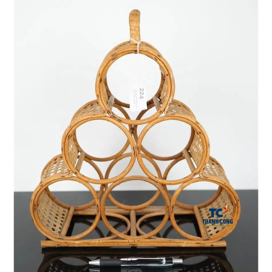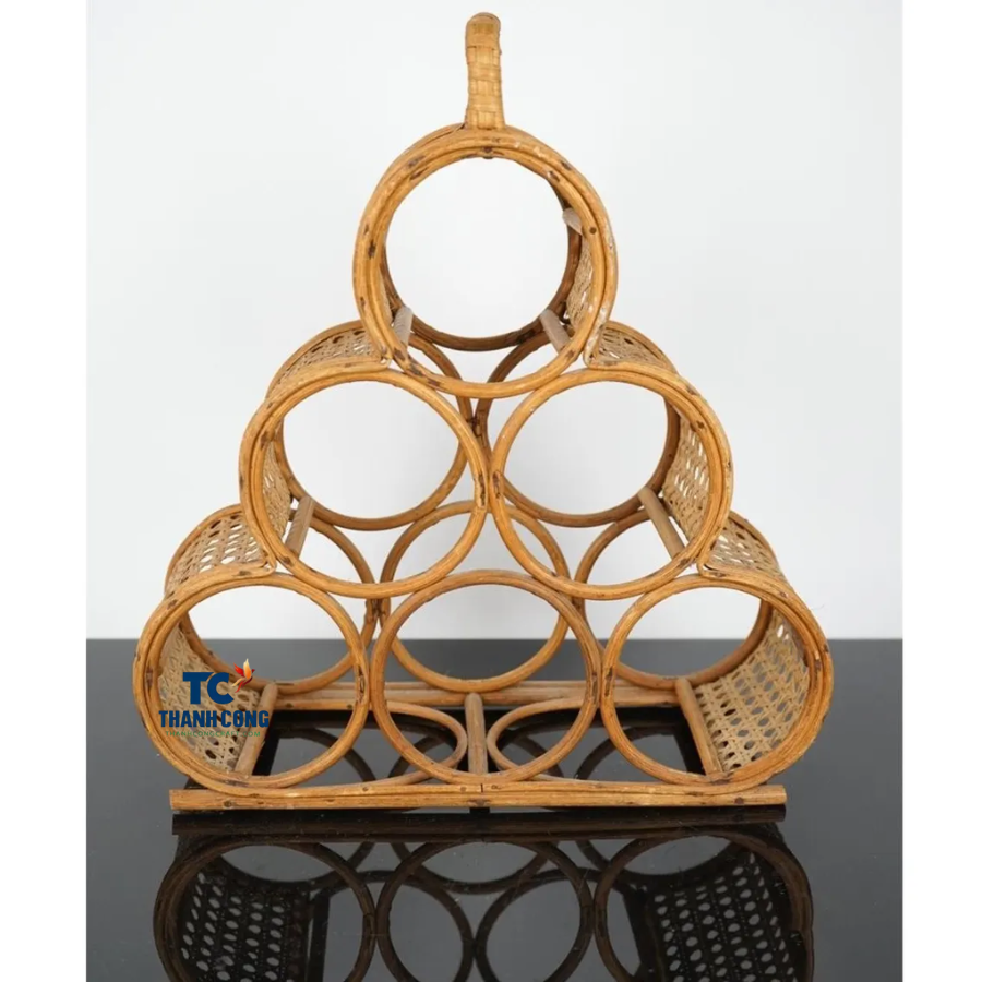 Meilleure vente en gros porte-bouteilles en rotin naturel fait à la main 6 porte-bouteilles présentoir en rotin de style vintage du Vietnam