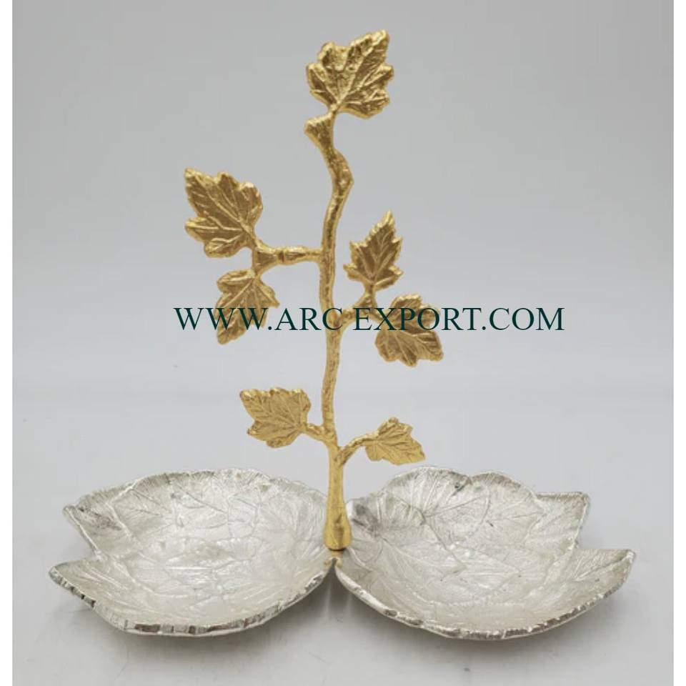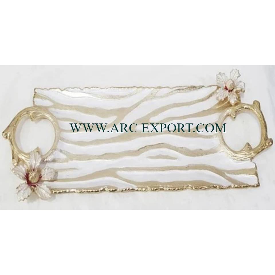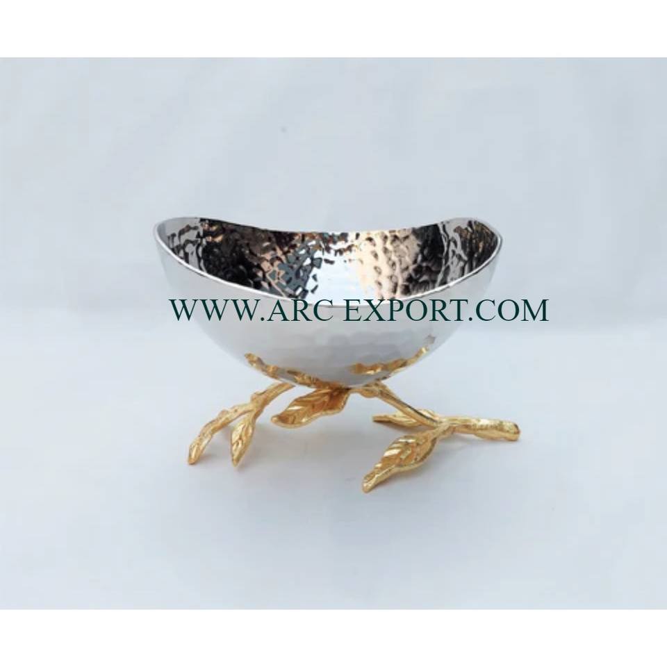 Meilleure vente de table faite à la main bol de service alimentaire décoratif couleur or et blanc plateau et bol faits à la main à un prix raisonnable