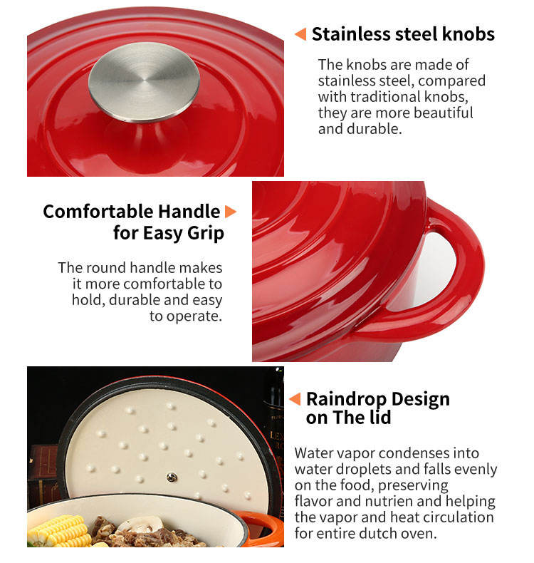 Ensemble de casseroles en fonte émaillée, best-seller, résistant à la chaleur, facile à nettoyer, avec poignée, pour la cuisine quotidienne