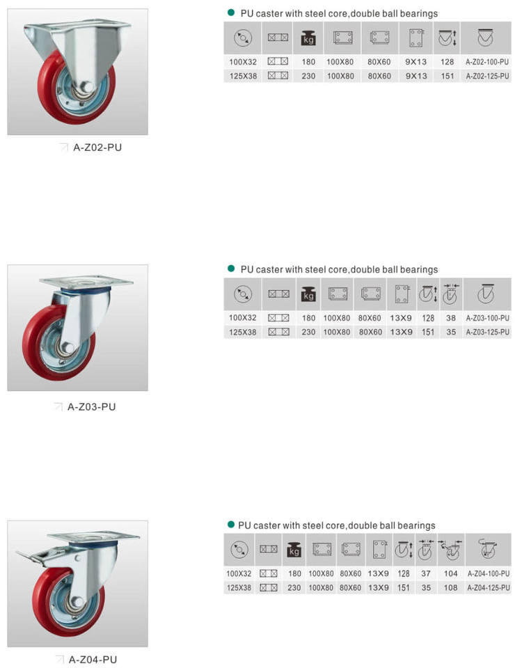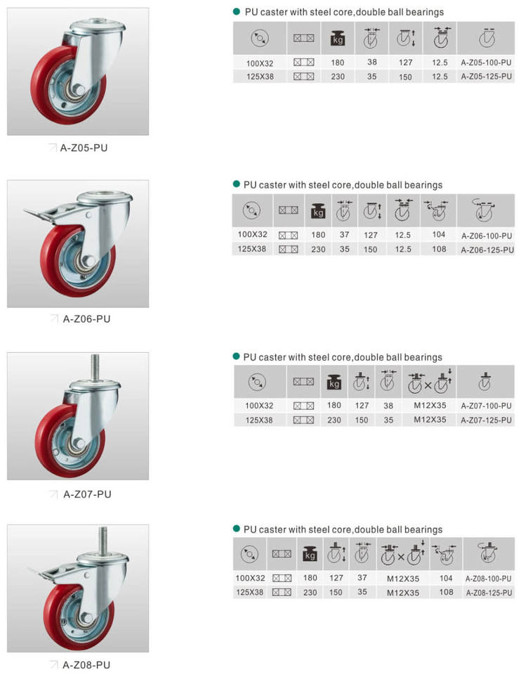 PU caster with steel core double ball bearingsNuméro de Type