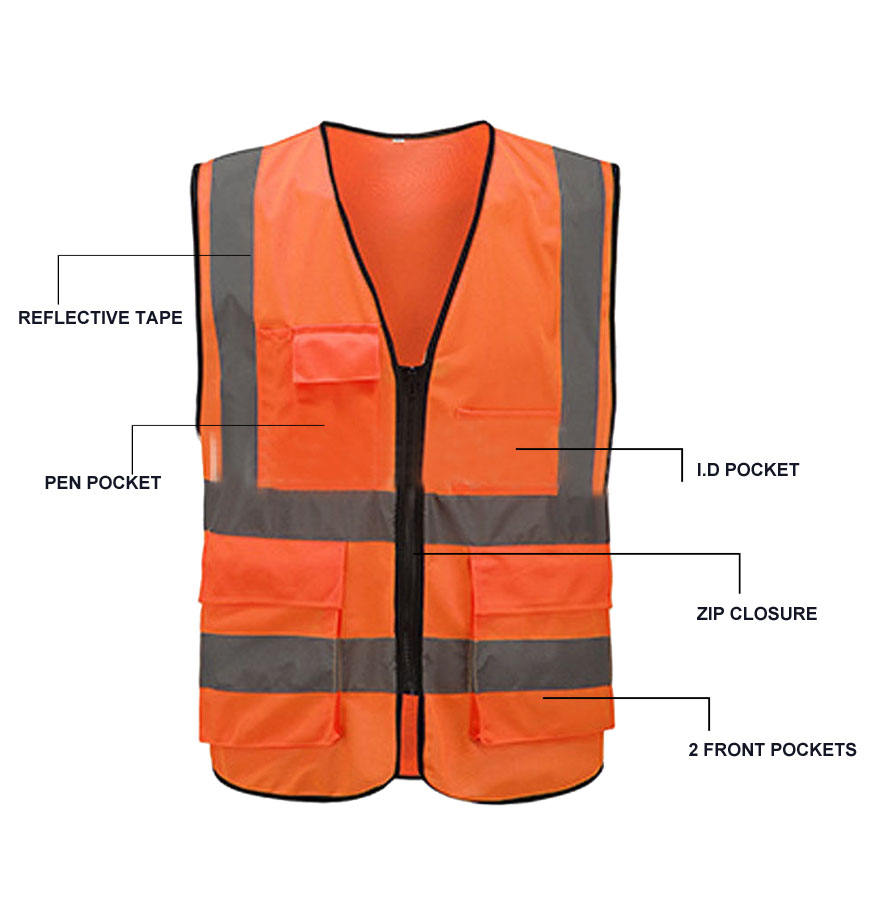 Veste de sécurité réfléchissante haute visibilité la plus vendue, multi-poches, fermeture éclair, 100% polyester, vêtements de travail