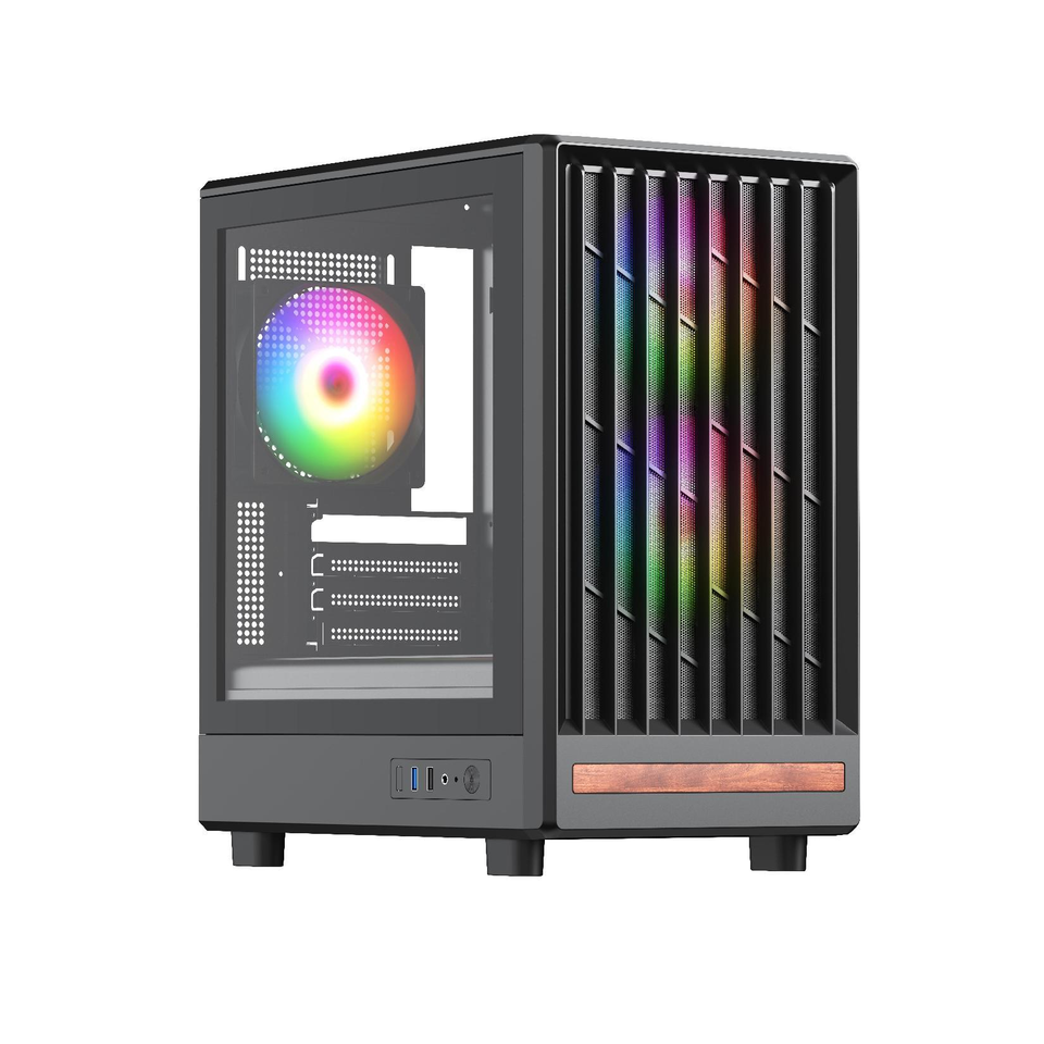 Meilleure vente de haute qualité pour ordinateur de bureau de jeu étui pour ordinateur Hd Usb3.0 atx avec design en bois et trois ventilateurs arc-en-ciel