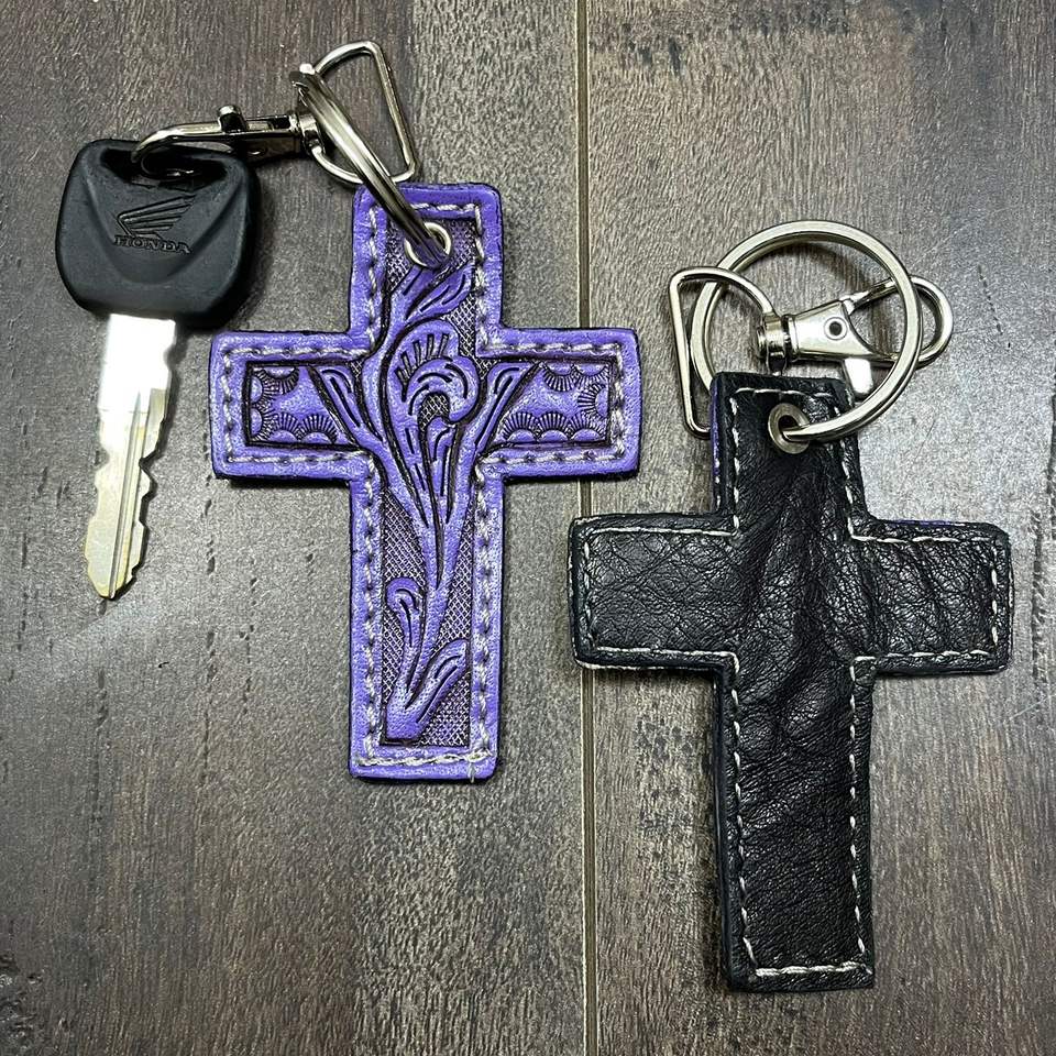 Nom du produit:Porte-clés croix en cuir de vache façonné à la main