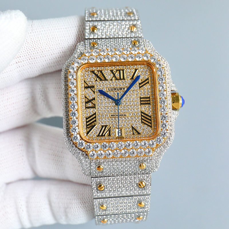 Meilleure vente de montres Hip Hop Iced Out Diamond automatique pour hommes de luxe de haute qualité Buste vers le bas VVS1 Moissanite