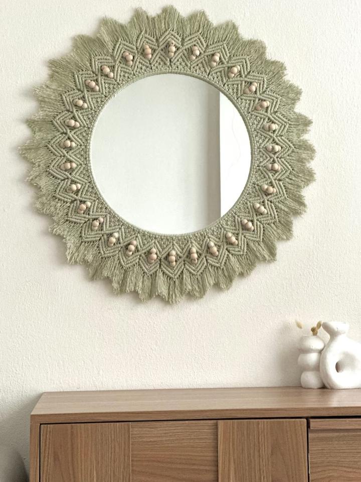 Meilleure vente de miroir mural en macramé pour la décoration intérieure miroir suspendu avec cordon 100% coton motif Boho Design qualité supérieure de l'Inde