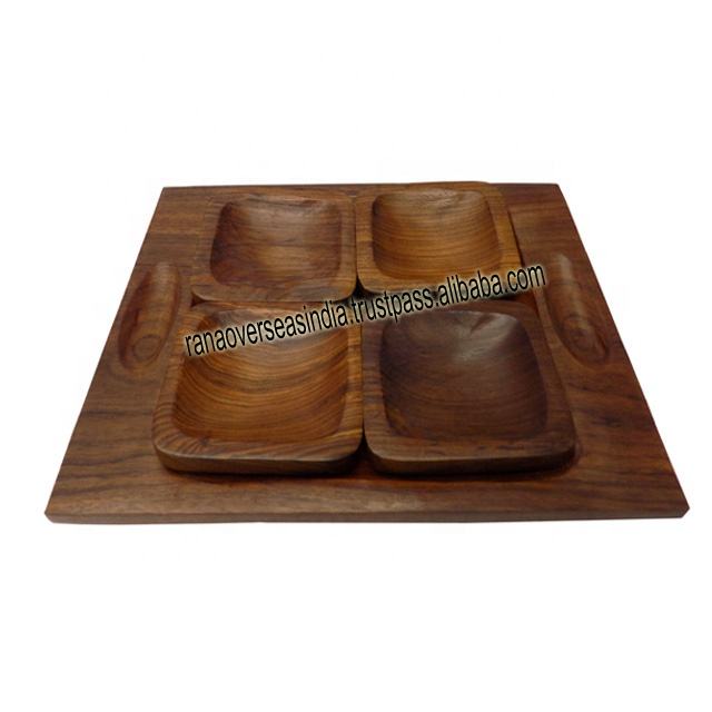 Meilleure vente Offre Spéciale assiette en bois de haute qualité avec plateau de service à 4 bols pour bonbons collation aux fruits secs et plus encore