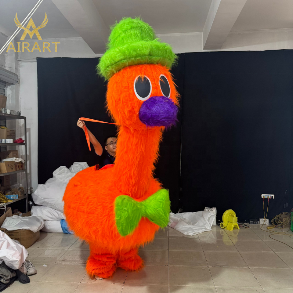 Meilleure vente gonflable longue peluche canard autruche oiseau Costume pour échasse spectacle activité