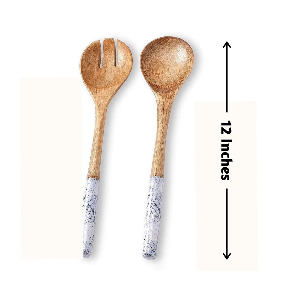 Meilleures ventes d'ustensiles de cuisine en bois de mangue Serveur à salade Cuillère de service et fourchette de service Ensembles de Serveur à salade en bois faits à la main