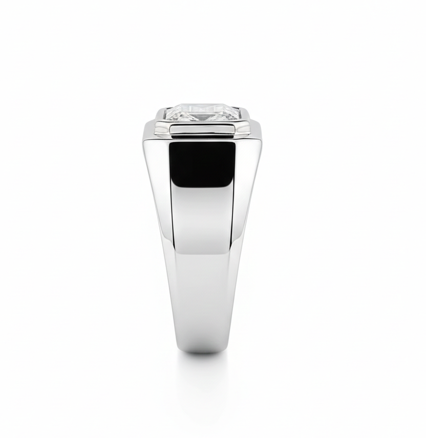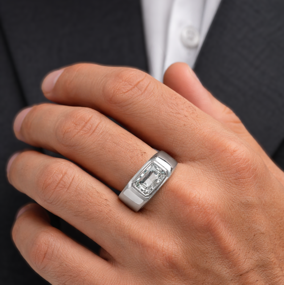 Bague signet en or massif 18 carats avec diamant de laboratoire taille émeraude, sertie clos, style minimaliste, pour mariage, vente en gros