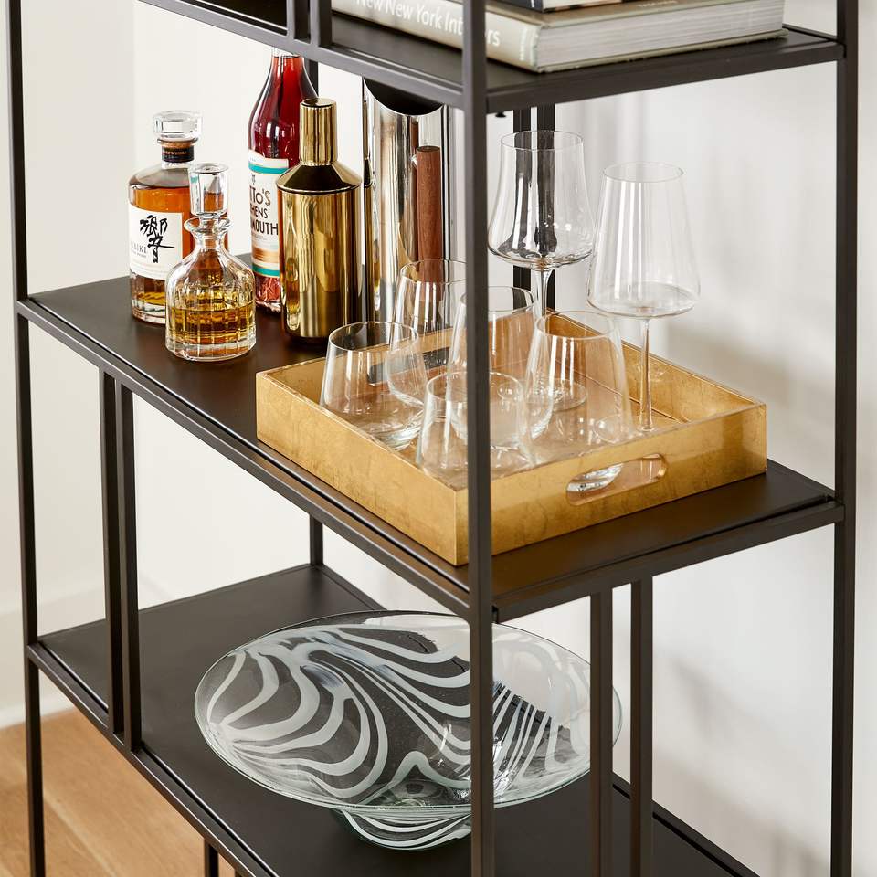 Plateau de service en laque incrustée de feuilles d'orNom du produit