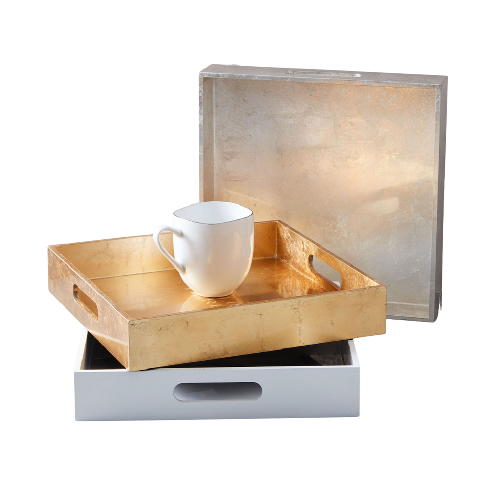 Plateau de service laqué le plus vendu avec une finition feuille d'or et d'argent Plateau décoratif élégant pour la décoration d'hôtel à la maison du Vietnam