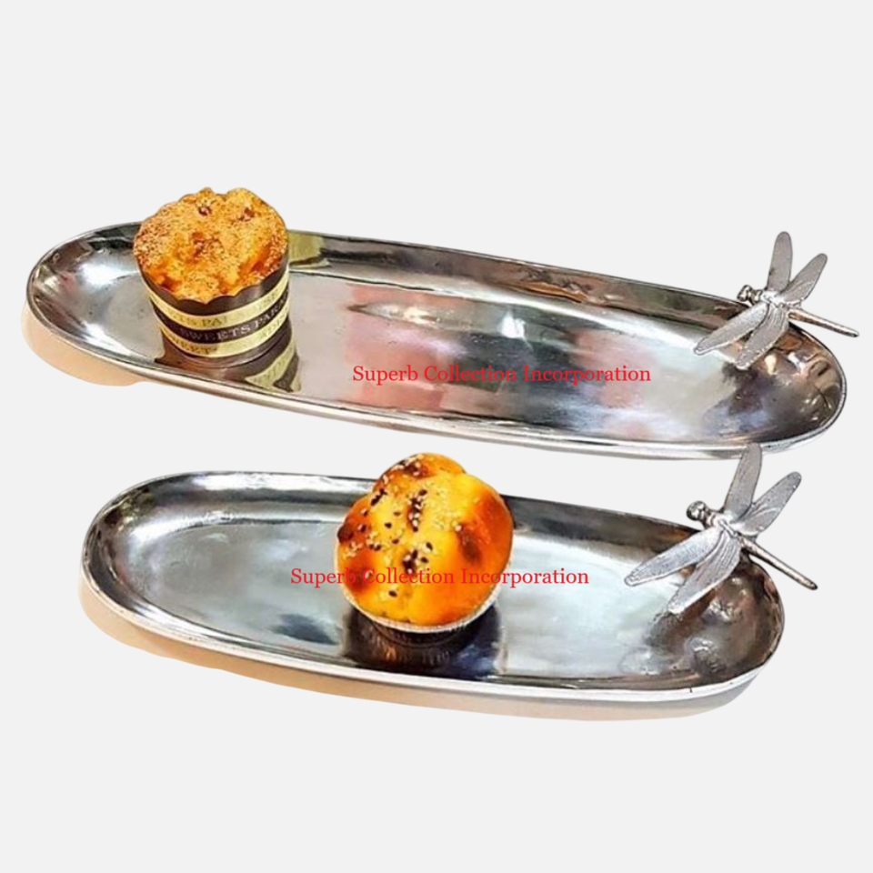 Best Selling Large Silver Fancy Side Dessert Serving Tray for Wedding Parties and Table Decorative Food Serving Dishes & Plates