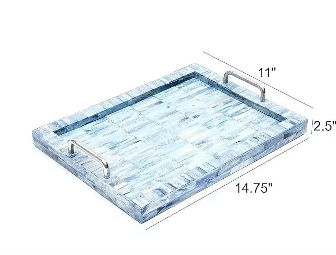 Grand plateau de service carré en incrustation d'os le plus vendu, parfait pour les plateaux de nourriture décoratifs et la présentation de table élégante