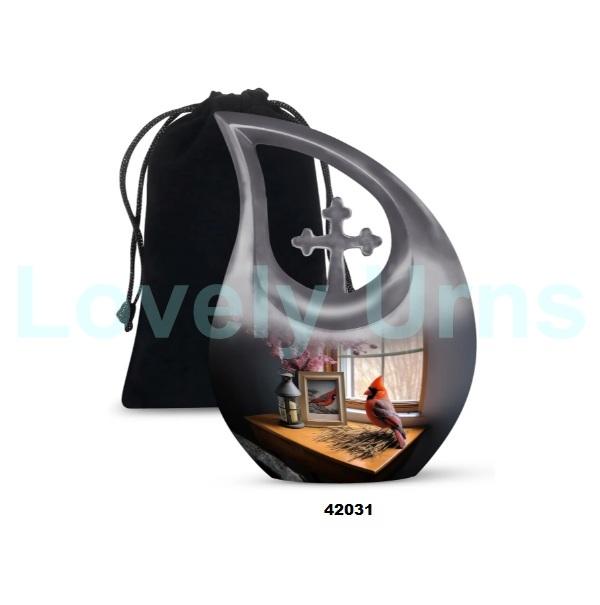 Meilleure vente grande larme jaune Cardinal oiseau crémation urne adulte pour cendres humaines urne funéraire croix décorative